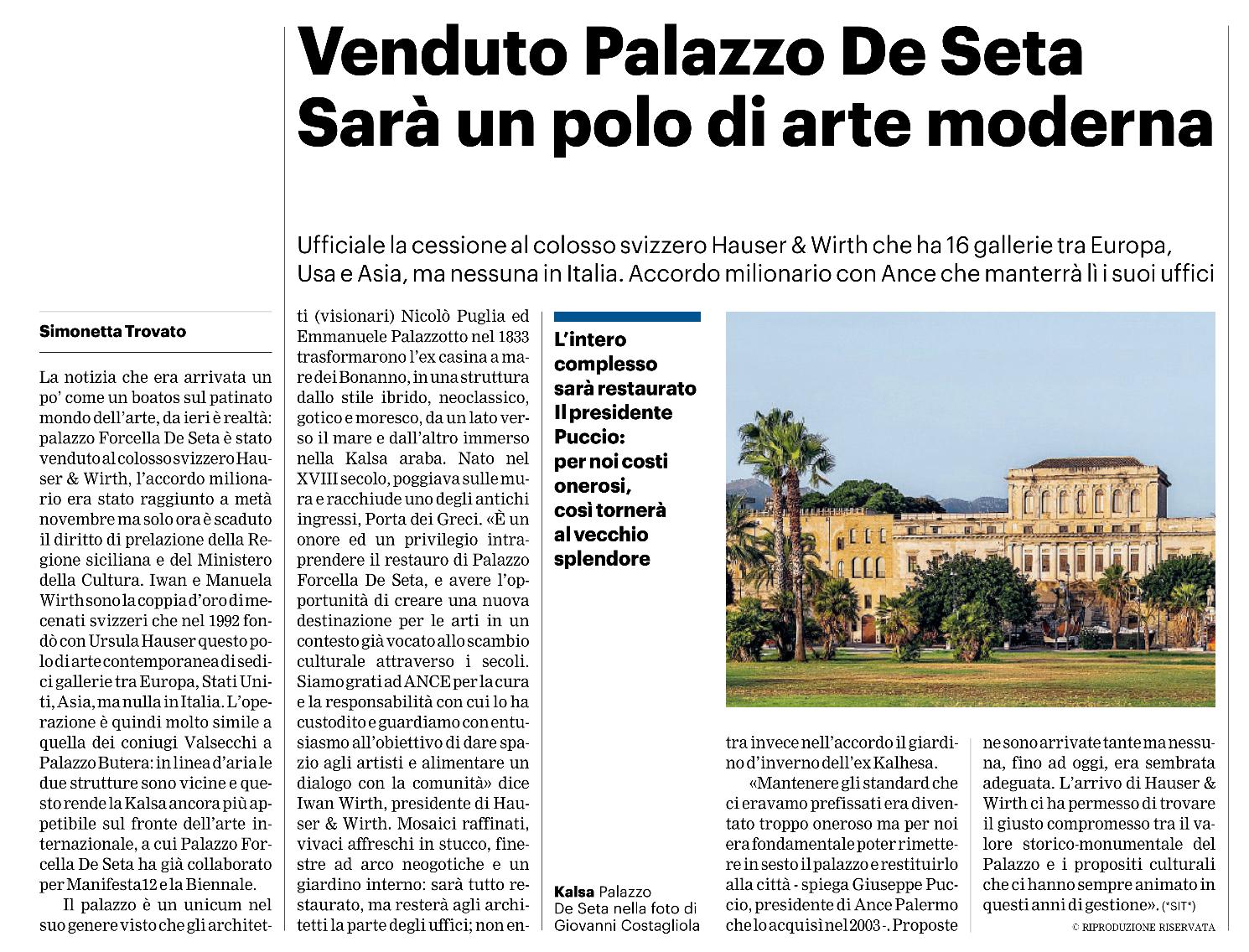 Venduto Palazzo De Seta, sarà un polo di arte moderna