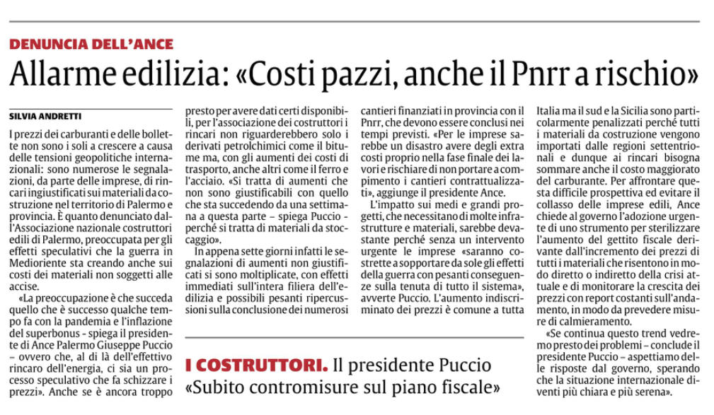 Allarme edilizia, costi pazzi: “Anche il Pnrr a rischio”